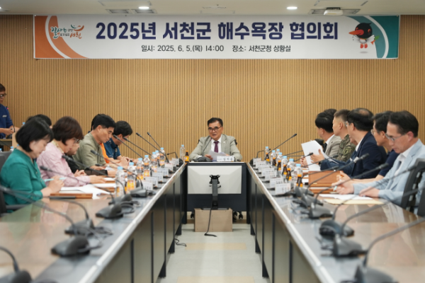 [충청25시] 서천군은 지난 5일 군청 상황실에서 ‘서천군 해수욕장협의회’를 개최하고 올해 춘장대해수욕장 개장 일정과 운영계획, 유관기관 협업체계 구축 방안 등을 집중 논의했다.