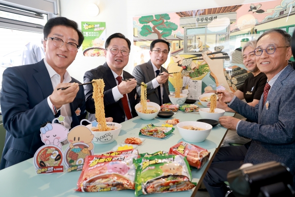 [충청25시] 대전시의회 조원휘 의장은 9일 아트사이트 소제에서 개최된 ‘대전꿈돌이 라면’출시 팝업행사에 참석해 ‘대전 꿈돌이 라면’출시를 축하하며 K-푸드와 함께 대전을 널리 알릴 수 있는 대박 아이템이 되길 기원했다.