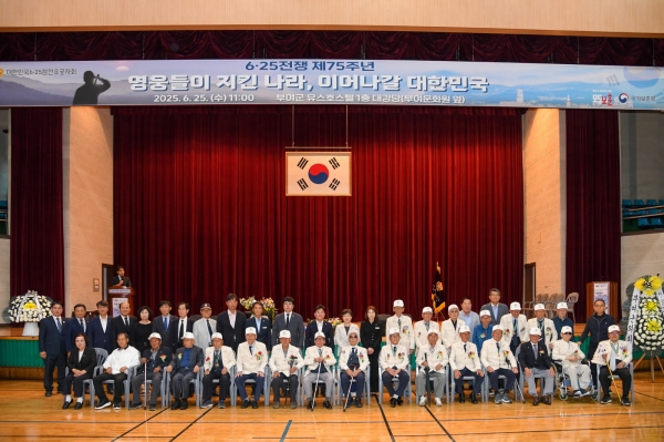 [충청25시] 부여군은 지난 25일 부여군유스호스텔 실내체육관에서 6·25참전유공자의 숭고한 희생과 헌신을 기리고 존경과 감사를 전하기 위해‘6·25전쟁 제75주년 기념식’을 거행했다.