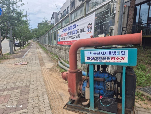 [충청25시] 논산시가 여름철 집중호우 및 태풍에 대비해 관내 상습 침수지역 9곳에 대한 현장 점검을 실시하고 이 중 3개소에 대형 양수기를 배치했다고 밝혔다.