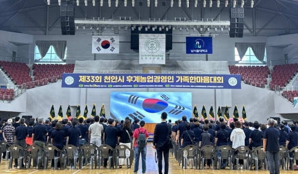 [충청25시] 천안시는 지난 28일 남서울대학교 성암문화체육관에서 ‘제33회 천안시 농업경영인 가족한마음대회’ 가 성황리에 열렸다고 밝혔다.