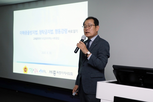 [충청25시] 세종시의회는 30일 시의회 1층 대회의실에서 시의원과 의회사무처 직원을 대상으로 국민권익위원회 청렴연수원이 주관한 청렴 교육을 실시했다.
