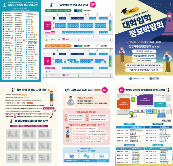 [충청25시] 세종시교육청진로교육원은 7월 15일 ~ 7월 16일에 이틀간 오전 10시부터 오후 4시까지 정부세종컨벤션센터에서 ‘2025 대학입학정보박람회’를 개최한다.