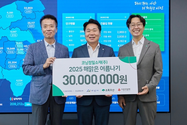 한편 코닝정밀소재는 2018년부터 2024년까지 ‘해맑은 여름나기’ 사업을 통해 아산시 취약계층 아동 총 700명에게 누적 후원금 기준 2억 3천만원 상당의 후원 금품을 지원한 바 있다.