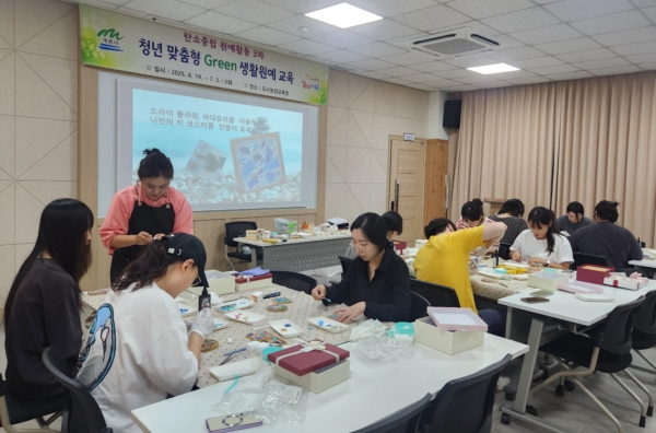 이번 교육은 도시농업을 통한 탄소중립 실천 공간 확대를 위해 마련됐으며 탄소중립 실천 방안에 대한 토의와 자연물을 활용한 생활용품 만들기 등 이론과 연계된 조별 실습 교육으로 진행됐다.
