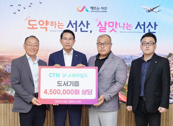 [충청25시] 충남 서산시는 3일 가금현 CTN·교육타임즈 대표가 450만원 상당의 도서 300권을 기증해 기탁식을 개최했다고 밝혔다.