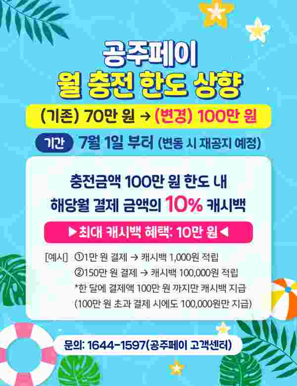 이번 충전한도 확대는 행정안전부가 최근 개정한 ‘지역사랑상품권 발행지원사업 종합지침’에 따른 것으로 시는 향후 공주페이 앱과 시청 누리집, 사회관계망서비스 등을 통해 시민들에게 적극 안내할 방침이다.