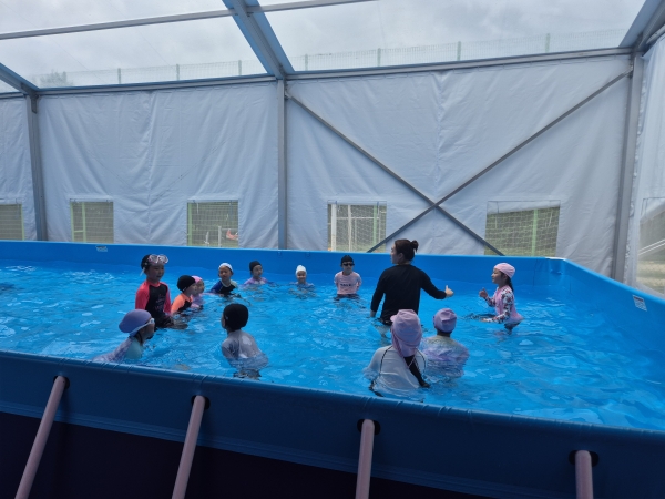 또한 학교 내에 설치된 대형 이동형 수영장에서 수업이 이루어지기 때문에 수영장까지의 이동시간이 소요되지 않으며 이동 중 안전사고의 우려가 없다.