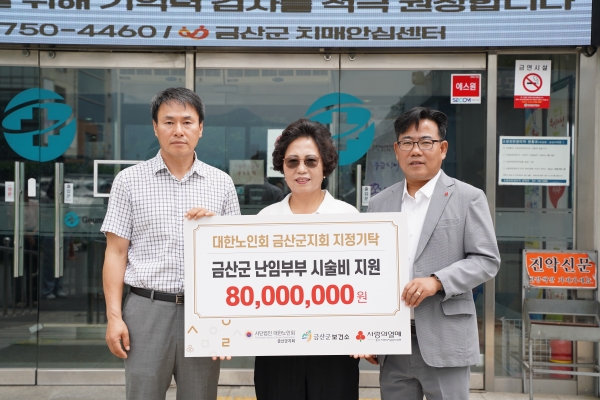 군 관계자는 “이번 사업은 지역사회 민간단체와 공공기관이 함께 만든 따뜻한 협력의 결과”며 “후원을 실천해 주신 대한노인회 금산군지회와 그 뜻을 전달해 주신 충남사회복지공동모금회에 깊이 감사드린다”고 말했다.