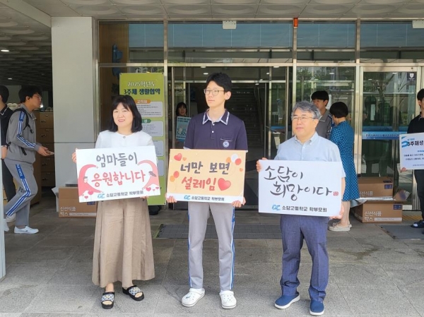 교직원과 학부모회는 함께 준비한 피켓과 손팻말을 들고 학생들에게 ‘소담이 희망이다’, ‘엄마들이 응원한다’ 등 따뜻한 인사와 격려의 말을 전했으며 학생회에서 준비한 ‘학생교사학부모가 서로 존중하는 소담고등학교’라는 문구가 적힌 파운드 케이크를 나누며 활기찬 아침을 시작했다.