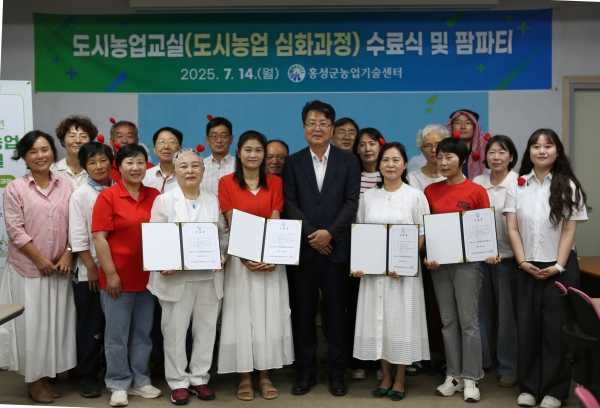 [충청25시] 홍성군농업기술센터은 지난 14일 도시농업 심화과정 수료식을 개최하고 17명의 수료생이 전문성과 현장 실무역량을 갖춘 도시농업 리더로 거듭났다고 밝혔다.