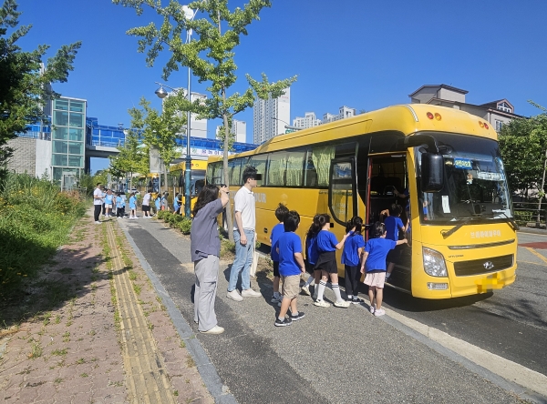 [충청25시] 아산교육지원청 학교지원센터는 지난 7월 11일 아산초등학교 학생들을 대상으로 재난안전체험교육을 위한 버스를 지원했다.