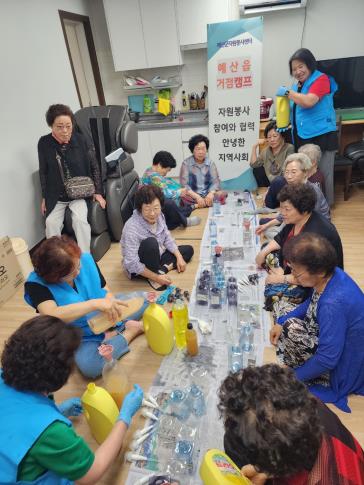 [충청25시] 예산군자원봉사센터는 읍면 자원봉사 거점캠프를 통해 마을로 찾아가는 EM 발효 천연주방세제 만들기 등 친환경 활동을 진행하고 있다고 밝혔다.