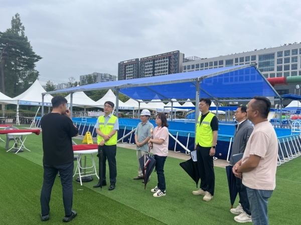 본격적인 물놀이장 운영을 앞두고 신광호 사장을 비롯해 도시공사, 시청 관계자들은 △물놀이장 안전 수칙 게시 여부 △최대수심 표지판 설치 상태 △놀이시설 추락방지 장치 등 주요 안전시설의 설치 및 작동 상태를 중점적으로 점검했다.