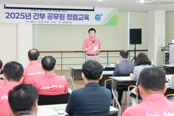 [충청25시] 금산군은 지난 16일 금산읍 청산회관에서 상호 존중을 실천하는 청렴한 조직문화 조성을 위해 간부 공무원 44명을 대상으로 청렴교육을 시행했다.
