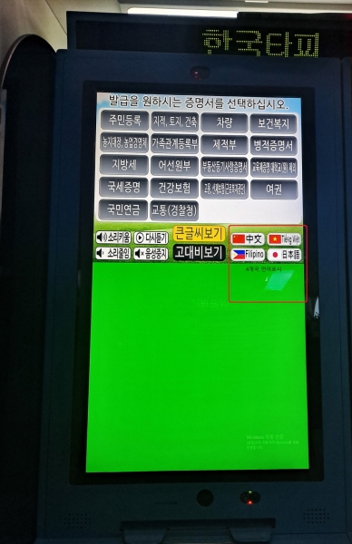 이를 통해 주민등록등본·초본, 가족관계증명서 기본증명서 혼인관계증명서 토지대장, 건축물대장 등 총 7종의 민원서류를 외국인도 보다 쉽게 발급받을 수 있게 됐다.