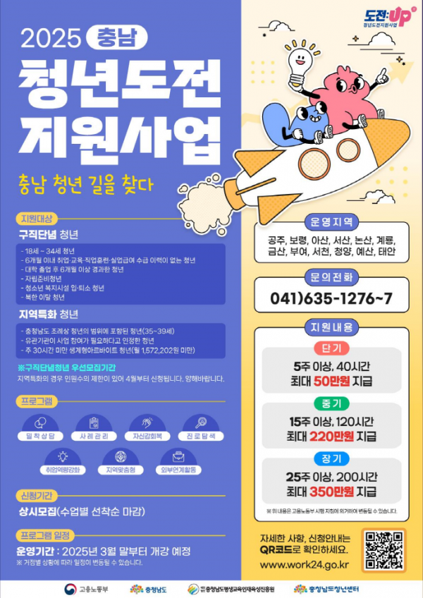 참여 신청은 ‘고용24’ 온라인 플랫폼 또는 충남청년센터 전화 문의를 통해 가능하며 사전 상담을 거쳐 선착순으로 모집한다.
