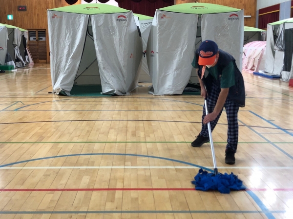 이들은 대피소 철수 지원은 물론, 강당 사용 후 원상 복구를 위한 지원까지 아낌없이 돕고 있다.