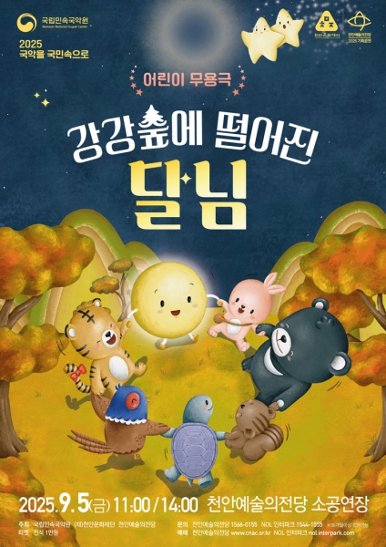 천안예술의전당은 국립국악원 주관 ‘국악을 국민속으로’ 공모 사업에 선정돼 국립민속국악원의 대표 작품 중 하나인 강강숲에 떨어진 달님을 개최할 수 있게 됐다.