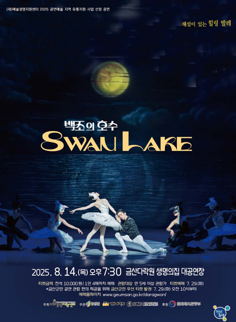 [충청25시] 금산군은 8월 14일 오후 7시 30분 금산다락원 생명의집 대공연장에서 세계 3대 발레극 중 하나로 꼽히는 ‘백조의 호수’ 공연을 선보인다.