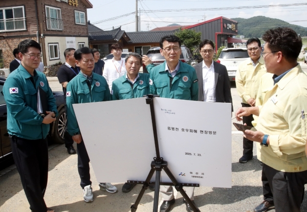[충청25시] 행정안전부가 23일 집중호우로 큰 피해를 입은 충남 아산시를 방문해 특별재난지역 선포를 위한 사전 조사에 착수했다.