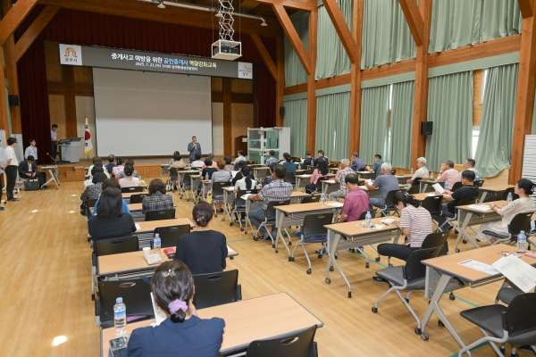 [충청25시] 공주시는 지난 23일 공주환경성건강센터 대강당에서 관내 개업 공인중개사 100여명을 대상으로 ‘중개사고 예방을 위한 공인중개사 역량 강화 교육’을 진행했다.