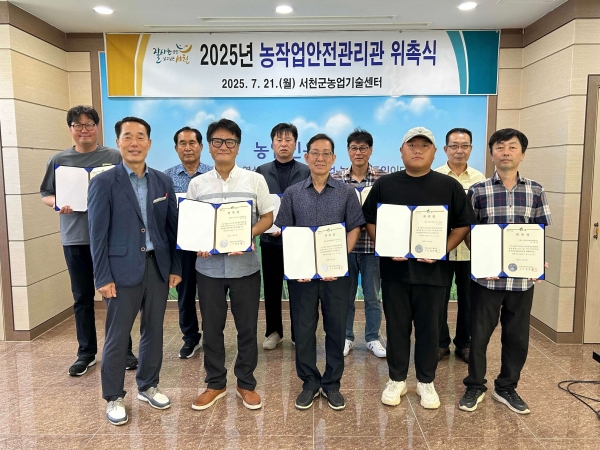 [충청25시] 서천군은 지난 21일 농업인의 작업 환경에 대한 안전보건 예방과 관리체계를 강화하고자 농작업안전관리관 10명을 위촉했다.