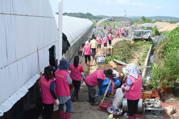 이번 호우로 주택침수, 농경지 유실 , 도로파손 등 다수의 피해가 발생한 가운데, 전국 60여 개의 단체와 300여명의 민간자원봉사자들을 합해 1,700여명이 넘는 자원봉사자들이 홍성복구를 위해 구슬땀을 흘리고 있다.