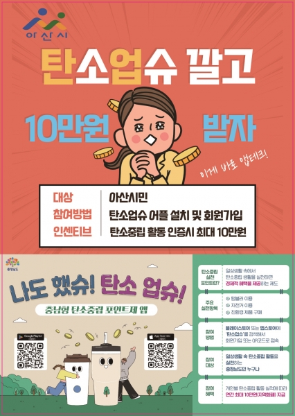 맹호림 기후변화대책과장은 “일상생활 속 탄소중립 실천을 통해 온실가스 감축을 함께 실현할 수 있도록 앞으로 아산시 시민들에게 탄소업슈를 적극적으로 홍보하고 참여 독려 하겠다”고 말했다.