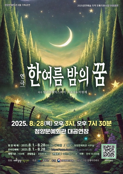 [충청25시] 청양군이 오는 28일 오후 3시와 7시 30분 2회에 걸쳐 청양문예회관 대공연장에서 연극 ‘한여름 밤의 꿈’을 선보인다.