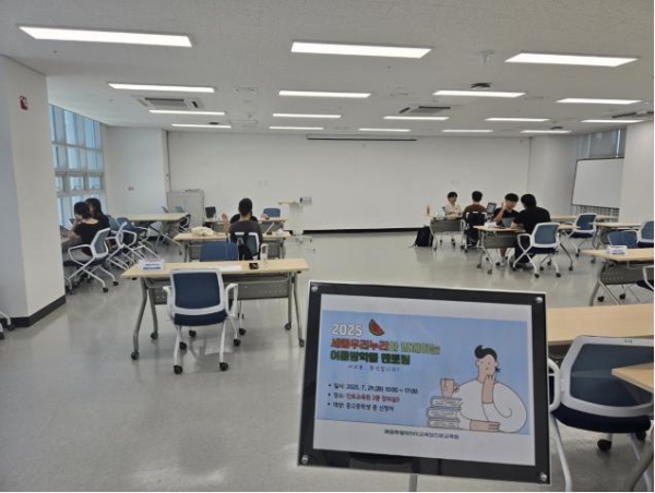 [충청25시] 세종시교육청 진로교육원은 자발적 교육봉사 단체 ‘세종우리누리’ 가 7월 30일부터 8월 6일까지, 세종시 관내 중·고등학생 33명을 대상으로 ‘여름방학 중 진로·진학 멘토링’ 프로그램을 대면 방식으로 운영하고 있다고 밝혔다.