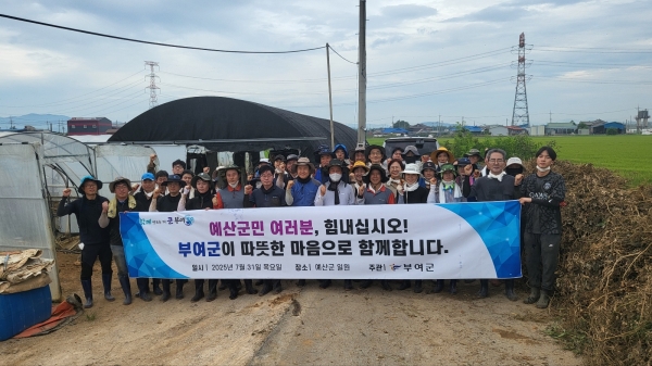 [충청25시] 부여군은 지난 7월 16일 기록적인 집중호우로 큰 피해를 입은 예산군민의 신속한 일상 복귀를 돕기 위해 31일 박정현 부여군수를 비롯한 공무원 총 50명이 자원봉사에 참여해 정성과 땀방울을 더했다.
