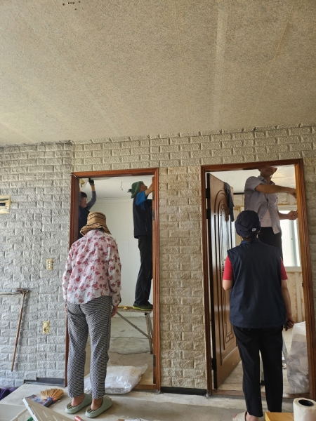 지난 7월 31일부터 시작된 이번 봉사활동은 독거노인, 장애인, 한부모가정 등 주거복구에 취약한 26가구를 우선 대상으로 도배장판 시공을 중심으로 진행되고 있다.