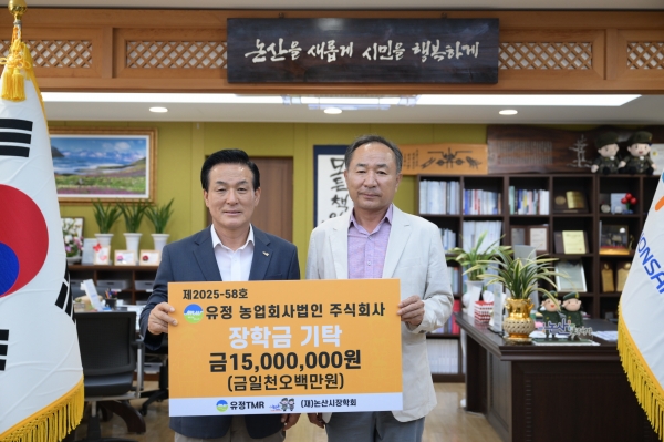 [충청25시] 논산시는 1일 논산시 소재 기업인 유정 농업회사법인 주식회사가 지역 미래 인재 양성을 위해 논산시장학회에 장학금 1,500만원을 기탁했다고 밝혔다.