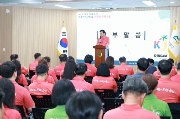 이에 앞서 “전 직원이 금산세계인삼축제를 알리기 위해 축제 홍보 티셔츠를 입고 근무를 하고 있다”며 “일관성 있는 모습으로 축제를 알릴 수 있도록 노력하자”고 당부했다.