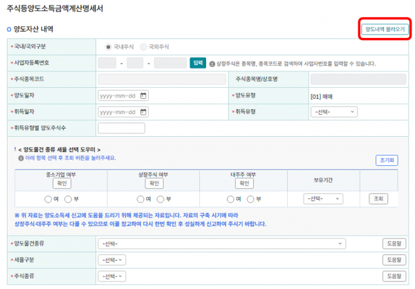 또한 주식 거래내역 조회, 세율선택 도우미, 주식양도 신고도우미 등 다양한 신고도움 서비스를 제공하니 이를 참고해 신고하시기 바란다.