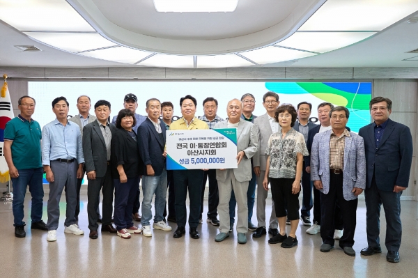 [충청25시] 아산시는 5일 전국 이·통장연합회 아산시지회로부터 최근 집중호우로 피해를 입은 주민들의 수해복구를 위한 성금 500만원을 전달받았다고 밝혔다.