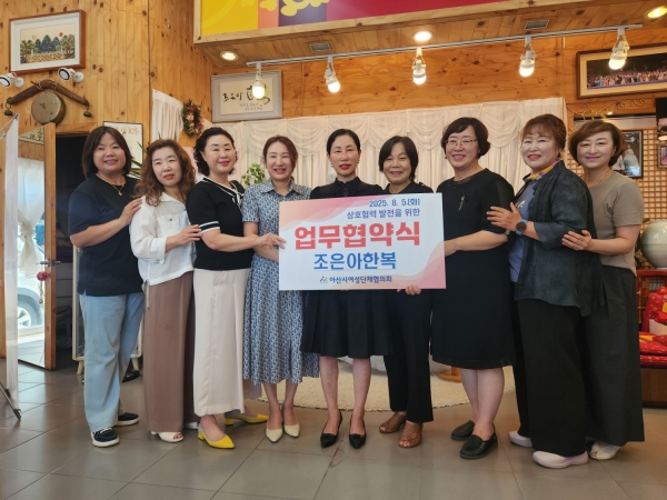 [충청25시] 아산시여성단체협의회가 5일 아산시 온천동에 위치한 ‘조은아한복’과 다문화가정에 한복 30벌을 후원하는 협약을 체결했다.