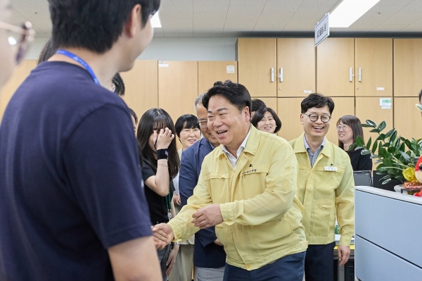 이번 방문은 수해 복구와 더불어 소비쿠폰 지급 등 민생 회복을 위한 비상 대응에 총력을 다한 공직자들의 헌신에 감사를 전하고 사기를 진작하기 위해 마련됐다.