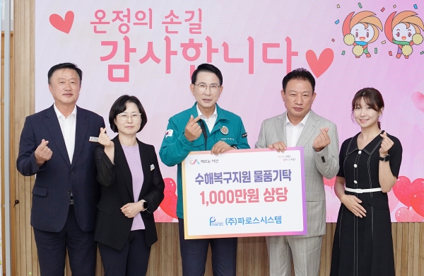 장태철 ㈜파로스시스템 대표이사는 “기록적인 집중호우로 어려움을 겪는 시민 여러분에게 작은 보탬이 되길 바라는 마음으로 가전제품을 기탁하게 됐다”며 “피해를 본 시민의 일상이 하루빨리 제자리를 찾길 바란다”고 말했다.