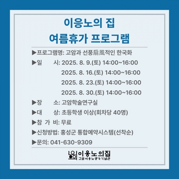 [충청25시] 홍성군 고암이응노생가기념관은 여름휴가 기간을 맞아 관람객이 직접 참여할 수 있는 예술 체험 프로그램을 운영한다.