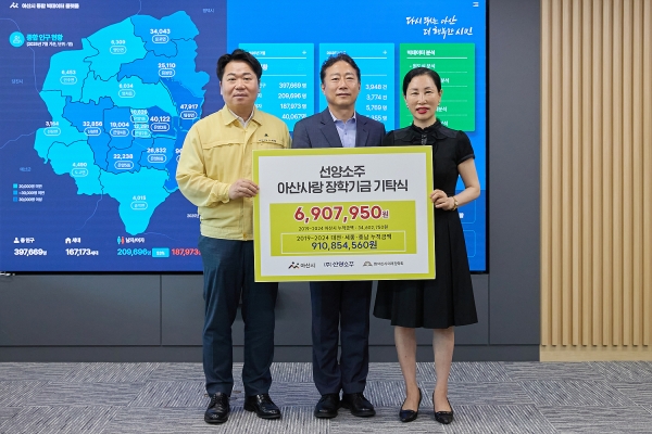 오세현 시장은 “지역인재 양성을 위한 선양소주의 지속적인 관심과 나눔에 감사드리며 앞으로 선양소주가 더욱더 발전해 아산시에 많은 도움이 되길 바란다”고 말했다.