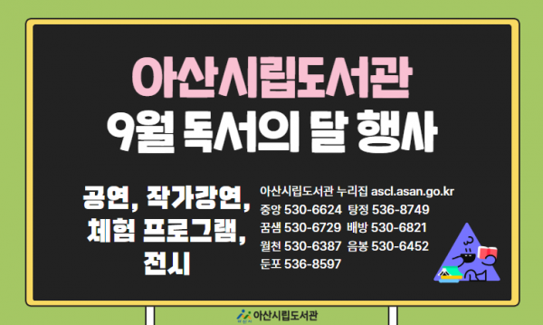 [충청25시] 아산시립도서관은 9월 ‘독서의 달’을 맞아 시민들이 책과 도서관을 더욱 가까이 느낄 수 있도록 다양한 프로그램을 마련한다.