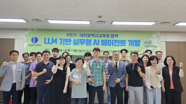 [충청25시] 대전시교육청은 8월 11일부터 14일까지 4일간(총 24시간) 한국과학기술 정보연구원(KISTI)과 협력해 ‘LLM(대규모 언어모델) 기반 실무형 AI 에이전트 개발 직무연수 (심화과정)’을 운영한다고 밝혔다.
