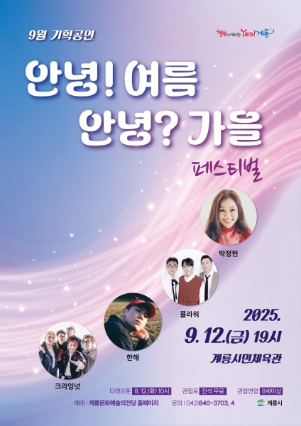 [충청25시] 계룡시는 오는 9월 12일 오후 7시 계룡시민체육관에서 ‘안녕여름 안녕?가을 페스티벌’ 을 개최한다.