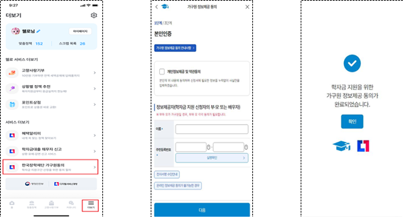 [충청25시] 행정안전부는 8월 13일부터 한국장학재단 누리집·앱에서만 이용 가능했던 ‘가구원 정보제공 동의’ 서비스를 민간 앱에서도 제공한다고 밝혔다.