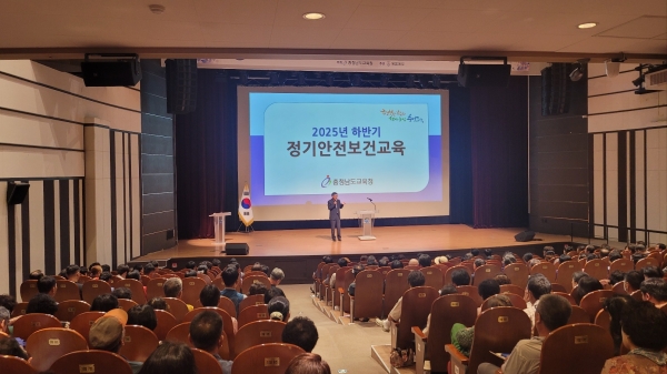 [충청25시] 충남교육청은 7월 25일부터 8월 28일까지 각급학교와 교육기관에 근무하는 현업업무종사자 6천여명을 대상으로 총 12회에 걸쳐 2025년 하반기 정기안전보건교육을 실시하고 있다.