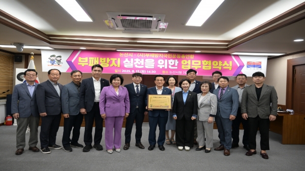 [충청25시] 논산시는 12일 논산시청 상황실에서 국민권익위원회 소관 부패방지국민운동총연합과 부패방지 문화 확산을 위한 협약을 체결했다.