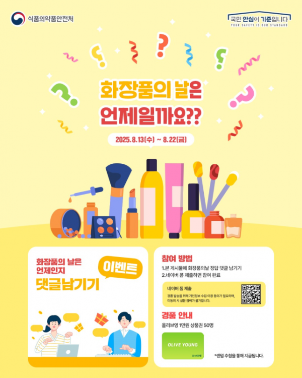 또한 8월 25일부터 식약처 누리소통망를 통한 ‘화장품의 날 응원 이벤트’도 실시할 예정이다.