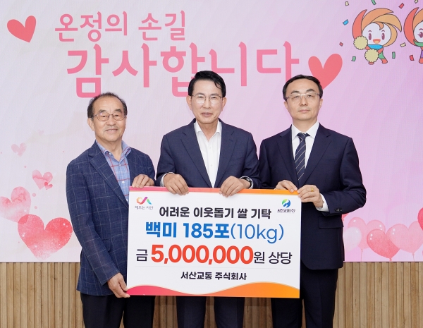 시는 이날 시청 시장실에서 이완섭 서산시장, 안생준·안광헌 서산교통㈜ 대표 등이 참석한 가운데 기탁식을 개최했다.